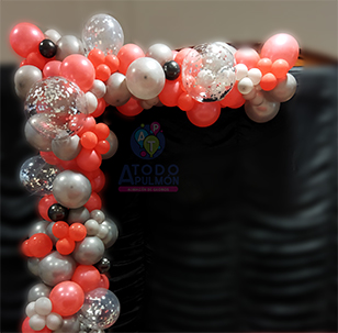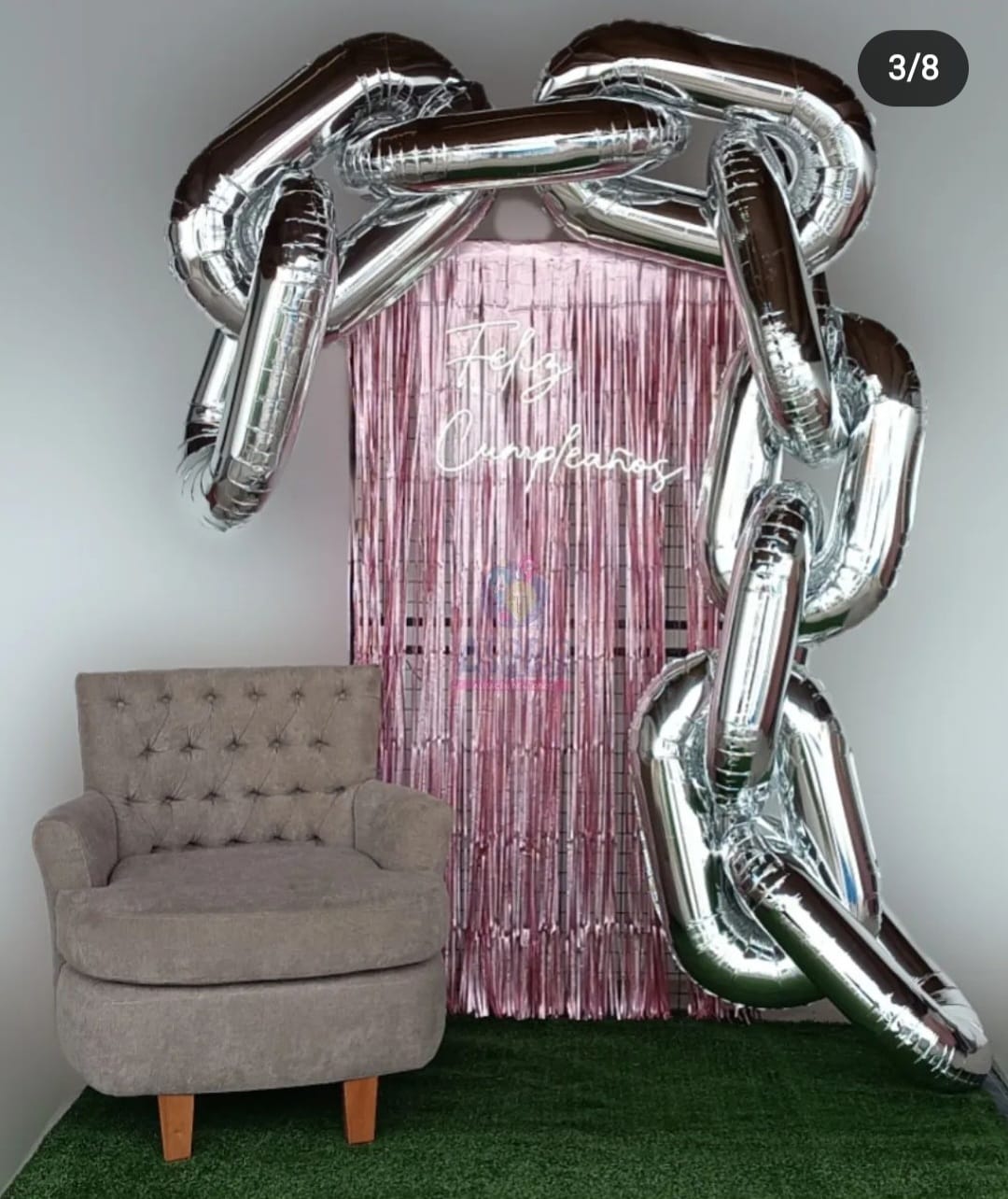 Imponente decoración con helio. Globos N° metalizado de 1 metro, globo burbuja personalizada, globos metalizados 18', globos de látex 12' Chrome y con confeti. Todo personalizado.