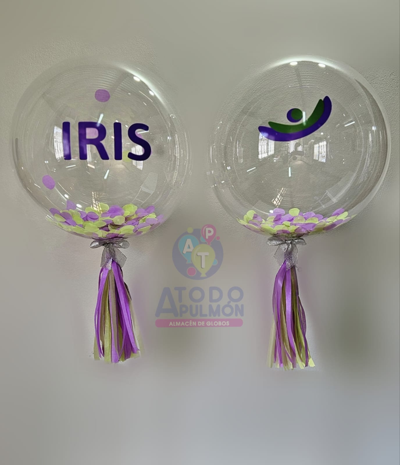 Globo burbuja personalizado, globos metalizados formas 18' y látex 12' común. Colores a elección.