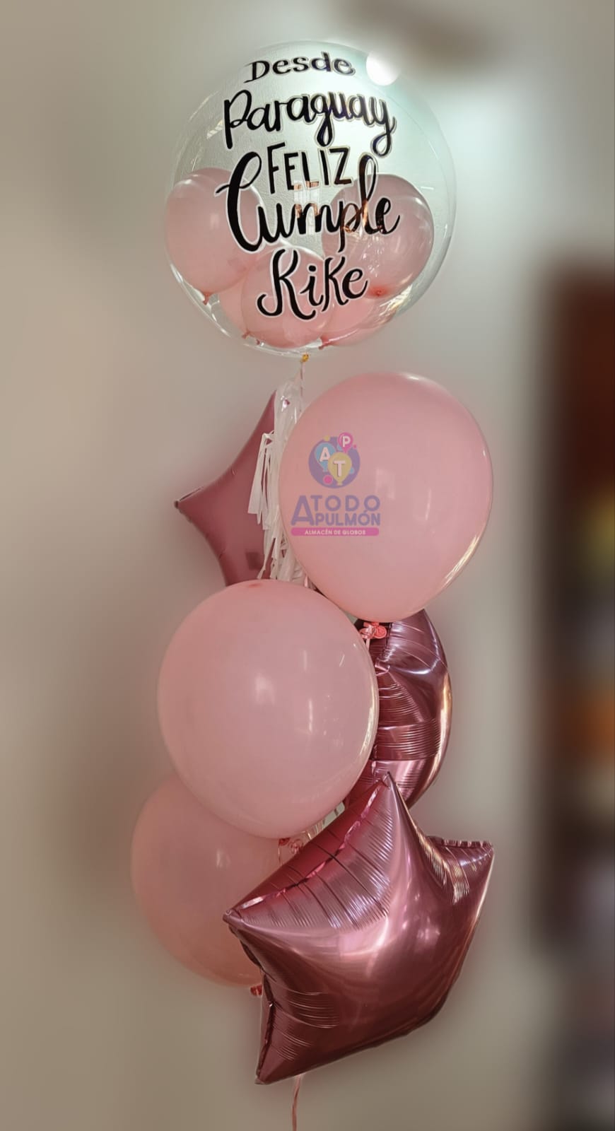 Compuesto de una burbuja personaliza y globos de látex 9'. Color, frase y modelo a elección.