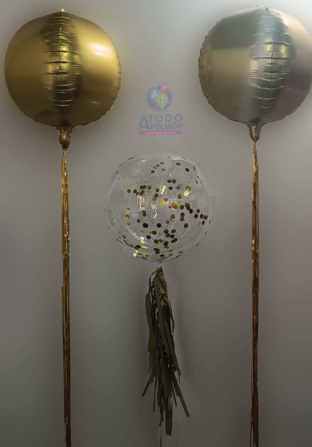 Compuesto de Globo burbuja personalizado, globos Metalizados formas 18', látex 12' Chrome y con confeti. Colores a elección.