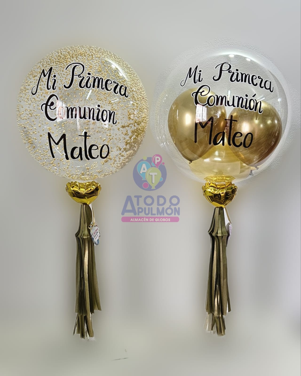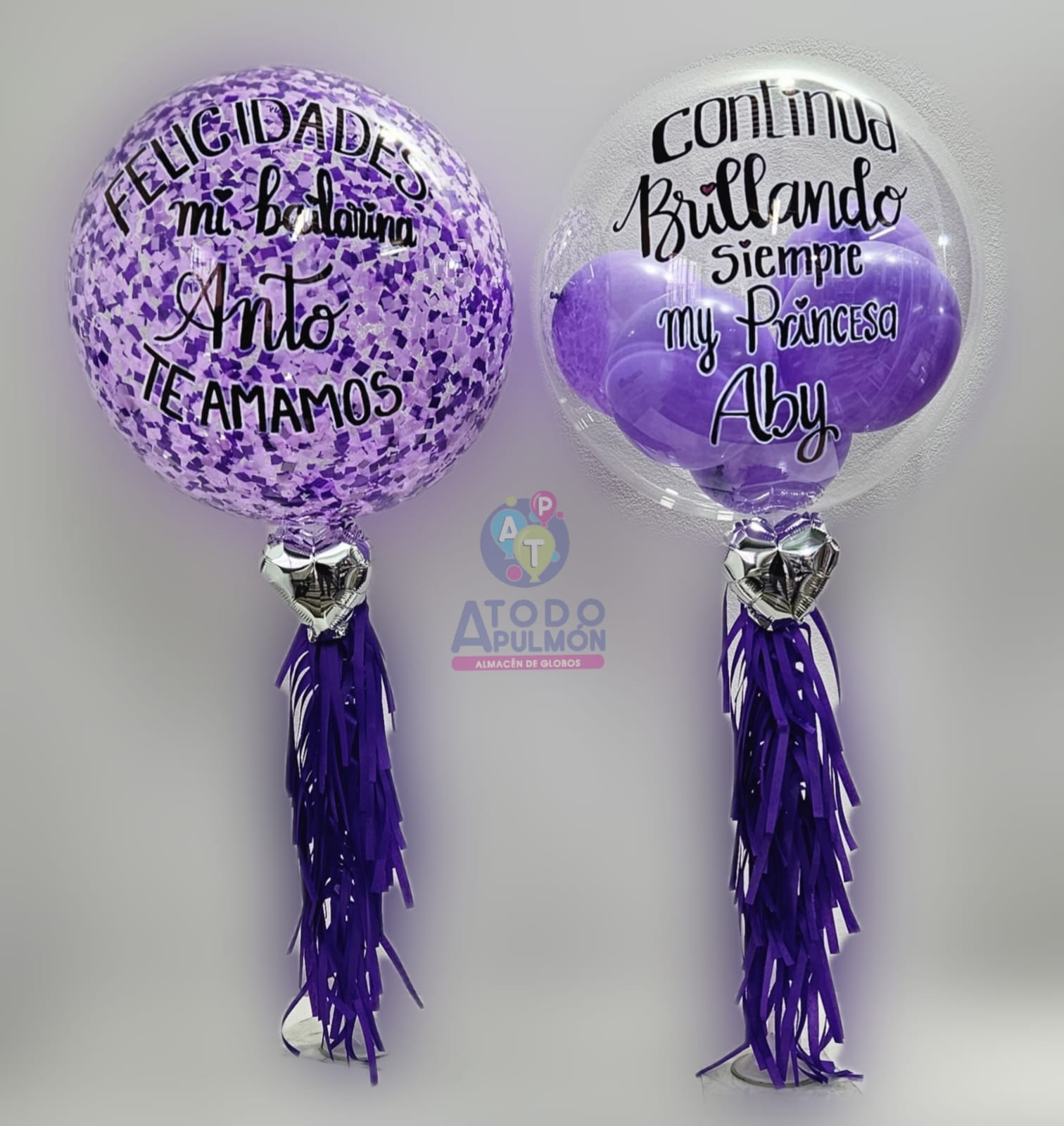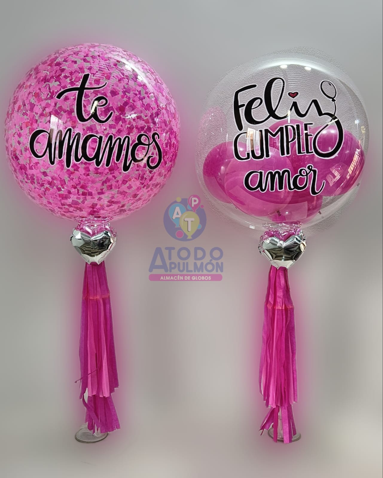 Globos burbujas personalizados con papelitos y globitos. Se elige color, modelo y frase.